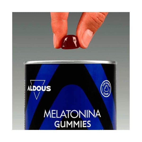 Melatonin in Gummies Aldous Bio 120 gummies is a chewable food supplement formulated to promote natural and restorative rest. Each gummy combines melatonin, valerian extract, L-tryptophan and vitamin B6 in a vegan presentation, without animal gelatin and with a pleasant flavor to make it easy to take daily before bed.