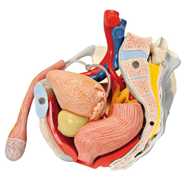 Anatomical model of the male pelvis with ligaments, vessels, nerves, pelvic floor and organs (Seven parts)