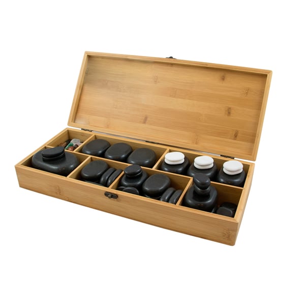 It is based on acupuncture and the use of meridian lines, it can help improve circulation. Basalt stones keep warm for a long time, they are ideal for back and neck massage, and in this case, they are presented in an elegant wooden box.