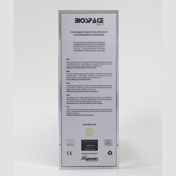 BIOSPACE 8V11 diamond electromagnetic radiation protection device. Featuring scientifically validated Pranan technology. Protection area up to 530 m². Ideal for home and work environments.
