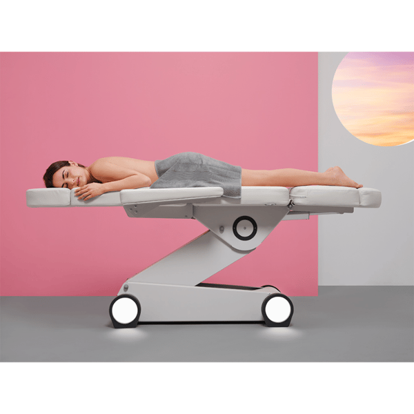 The B-Light 502 beauty and aesthetics treatment chair is a high-end treatment chair and stands out for its innovative design . It features four motors that control the height and inclination of the backrest, seat, and footrest. The armrests and headrest are foldable and removable. The structure is made of a very stable steel frame with a white LED light integrated into the base. It is upholstered in high-quality white PU.