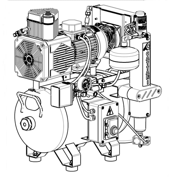 Cattani AC 100 dental compressor. For dental equipment with air dryer and oil-free