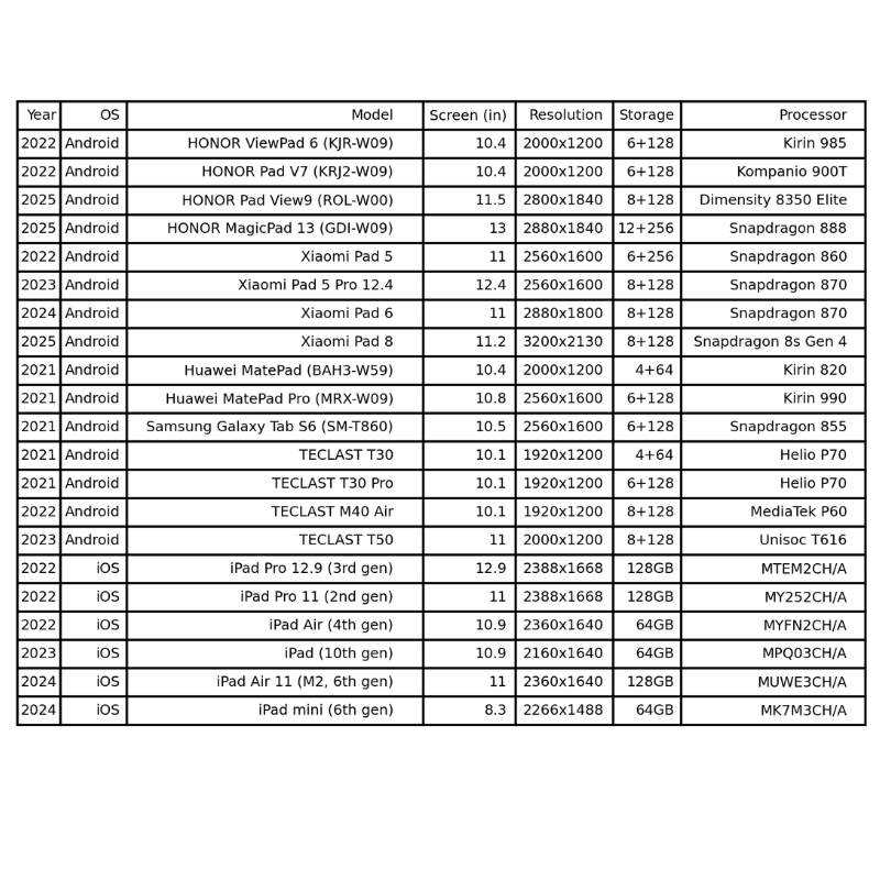 Tablet models compatible with the Sonoeye Portable Ultrasound Scanner