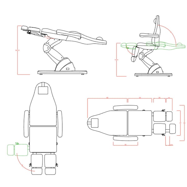 Cubo electric podiatry chair: Three motors that control the height, inclination of the backrest and seat