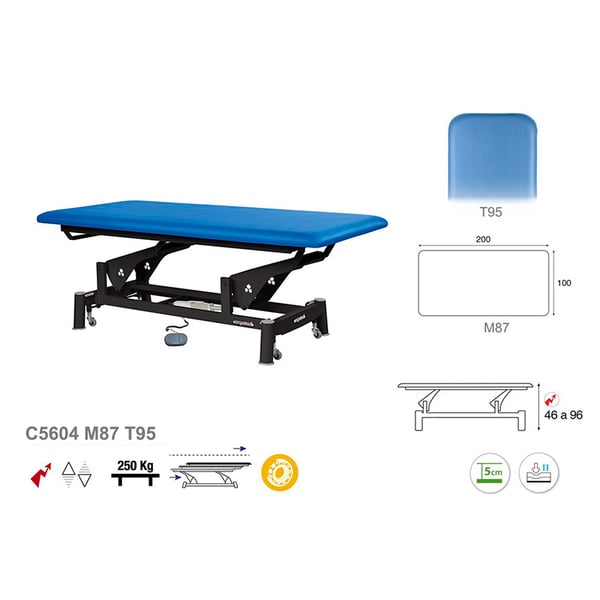 Ecopostural electric stretcher, Bobath type, ideal for specialties: a body with a black connecting rod structure and a T95 head (100 x 200 cm)