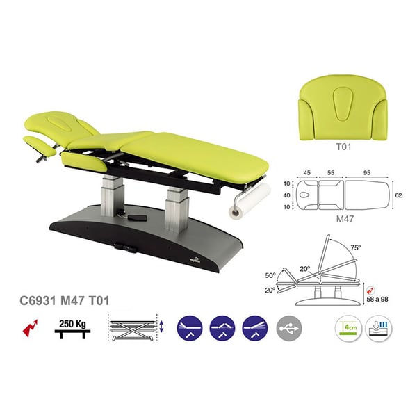Ecopostural electric stretcher: Multifunctional with folding arms, two columns and three bodies (62 x 200cm)