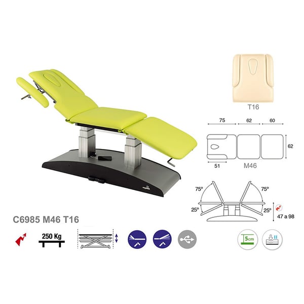 Ecopostural electric stretcher: Three bodies with hydraulic backrest system and headrest up to 100º inclination (62x198 cm)