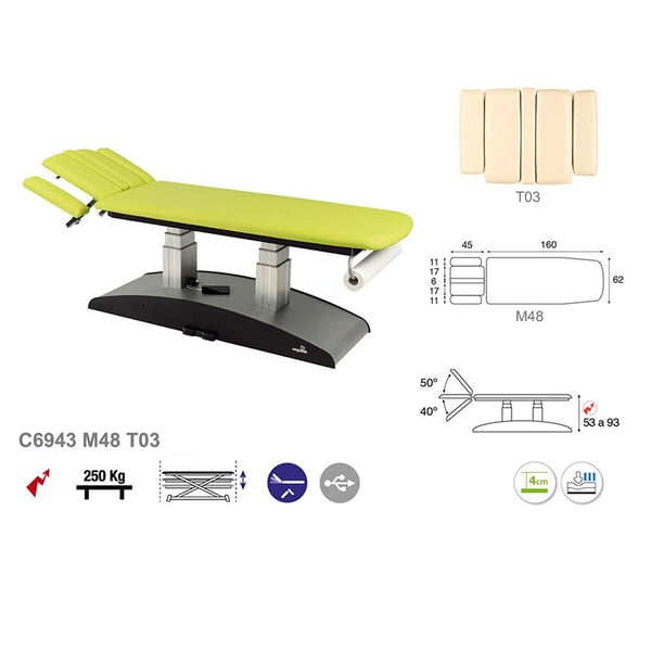 Electric stretcher with two columns, two sections and vertical elevation with a headrest that can be reclined up to 90º with a roll holder included. It has a simple, modern and functional design. Another of the great advantages that the stretcher offers is its versatility, as it is ideal for numerous fields: physiotherapy, osteopathy, general medicine, aesthetics, tattoos. A perfect solution for any health and aesthetics professional.
