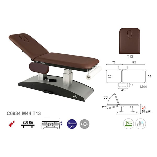 Electric two-section stretcher with vertical elevation and two columns, folding arms and a 20º negative reclining headrest. It has a simple, modern and functional design. Another of the great advantages of the stretcher is its versatility, as it is ideal for numerous fields: physiotherapy, osteopathy, general medicine, aesthetics, tattoos. A perfect solution for any health and beauty professional.