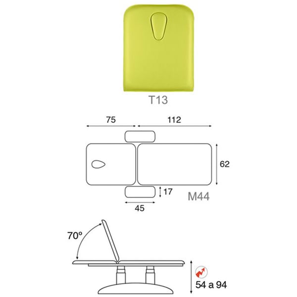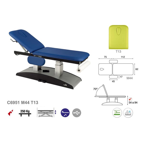 Electric stretcher with two columns, three sections and vertical elevation with folding arms and T04 type headrest. It has a simple, modern and functional design. Another of the great advantages that the stretcher offers is its versatility, as it is ideal for numerous fields: physiotherapy, osteopathy, general medicine, aesthetics, tattoos. A perfect solution for any health and aesthetics professional.