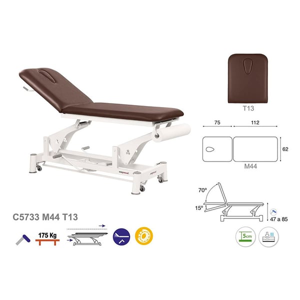 This two-section hydraulic stretcher with a facial hole stands out for its simple, modern and functional design. Another of the great advantages of the stretcher is its versatility, as it is ideal for numerous fields: physiotherapy, osteopathy, general medicine, aesthetics, tattoos. A perfect solution for any health and beauty professional.