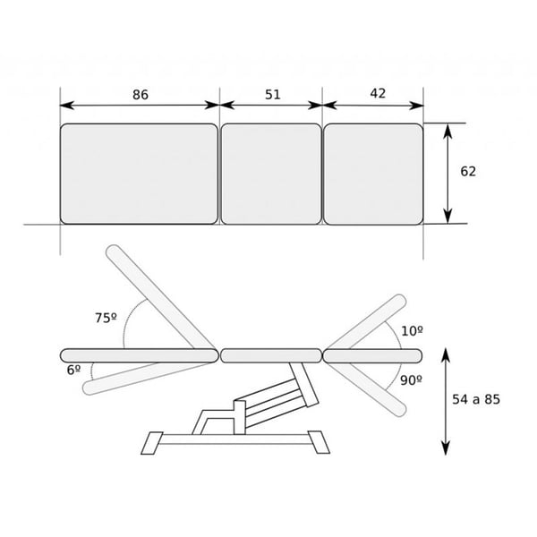 Electric gynecological examination chair with three sections. It has height adjustment by hand control. Includes gynecological leg supports, removable stainless steel tray and ergonomic cervical cushion. In addition, it has a compensated Trendelenburg position.