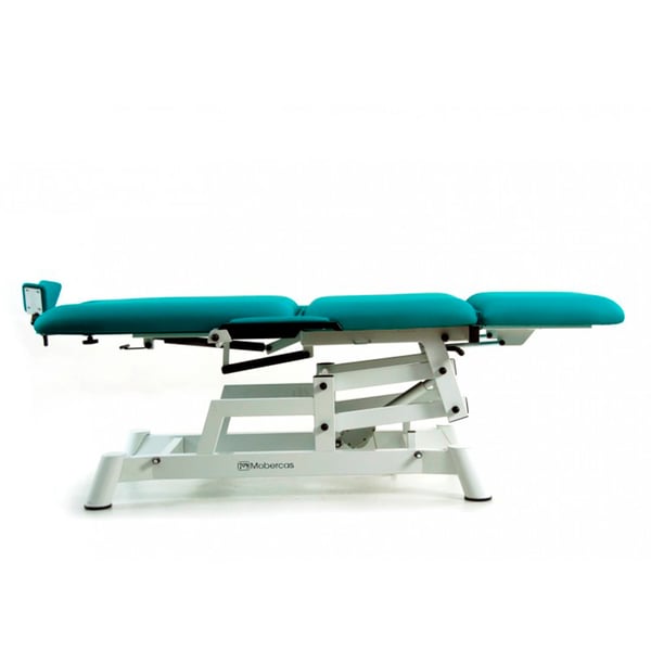 Electric ophthalmology chair with three bodies. It consists of height adjustment by hand control. Includes 90º folding armrests (metallic and upholstered) and ergonomic headrest for ophthalmology. In addition, it has a compensated Trendelenburg position .