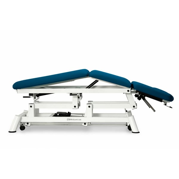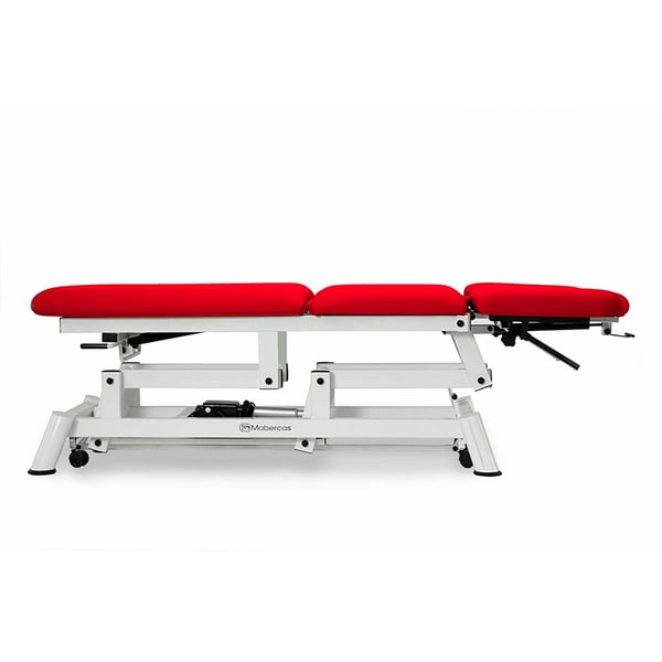 It also has retractable wheels suitable for transporting patients in short sections or moving the stretcher to carry out the treatment. It also has electric height adjustment with remote control, thanks to the lifting motor.