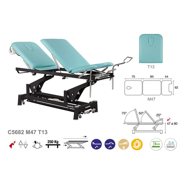 Electric stretcher, Ecopostural, ideal for specialties: three bodies with black connecting rod structure and T13 head (62 x 200 cm)