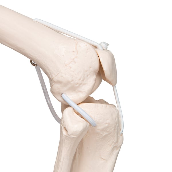 It is possible to graphically appreciate the relationship between the ulna and the radius during pronation or supination of the forearm . The flexible spine allows you to practice natural movements (lateral bending, flexion, extension, rotation). The flexibility of this assembly allows to appreciate the position of the patella during extension and rotation of the knee joint . In order to reproduce their natural anatomical situation, the bones of the hand are mounted with wires. The flexible assembly of the bones of the foot facilitates its mobility. It is even possible to observe the limited mobility of the sacral vertebrae and the sacroiliac joint.