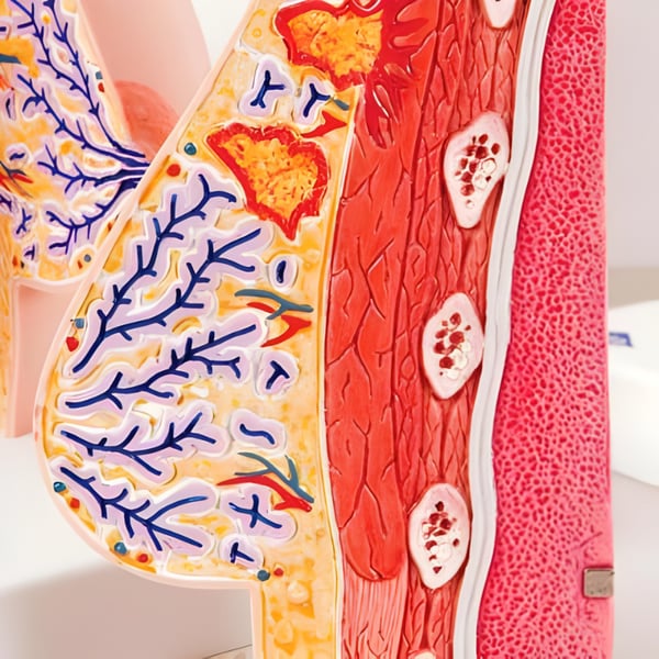 Anatomical model of the female breast designed to demonstrate the internal structure of breast tissue in both healthy and pathological states. Ideal for medical teaching, healthcare training, and education on breast pathologies. It allows for visualization of the different tissue layers and an understanding of the most common breast abnormalities.