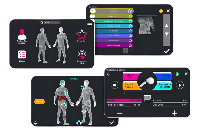 The device incorporates a powerful, self-protected magnetron generator with automatic regulation , capable of continuous and pulsed operation, allowing for both thermal and non-thermal treatments. Thanks to its high peak power (1600 W), Fisiowave guarantees effective penetration and rapid clinical results .
