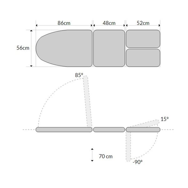 Fixed-height aesthetic stretcher chair: three bodies, with independent legs, swivel armrests and cervical cushion