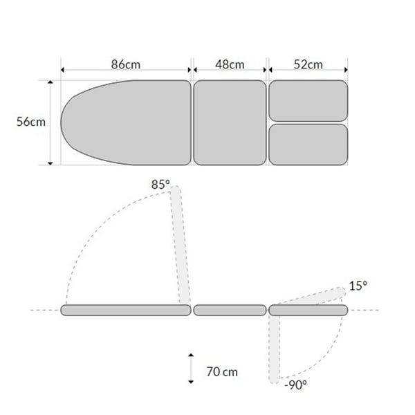 Fixed-height tattoo stretcher chair: three bodies, with adjustable extraction arms, independent leg supports and cervical cushion