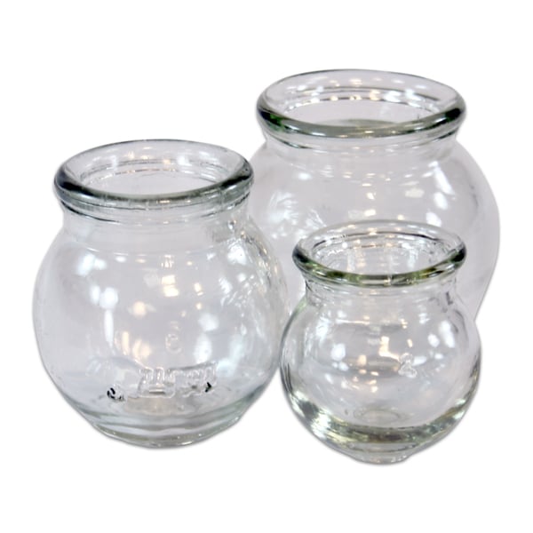 Kit of glass suction cups with a thick edge in the opening. It is possible to place the suction cup with the opening upwards thanks to its flattening on the head.