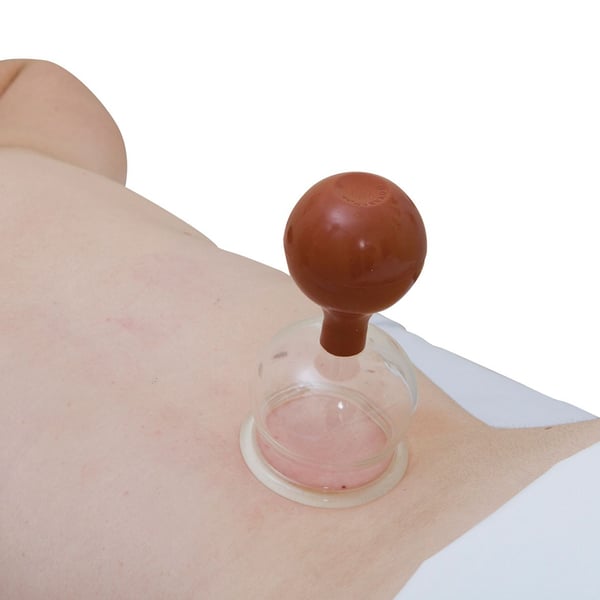 Glass suction cup with rubber suction bulb: 3.2 centimeters in diameter