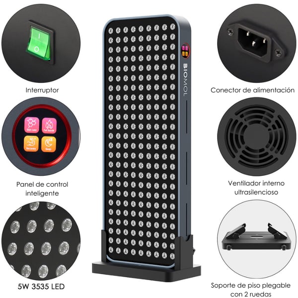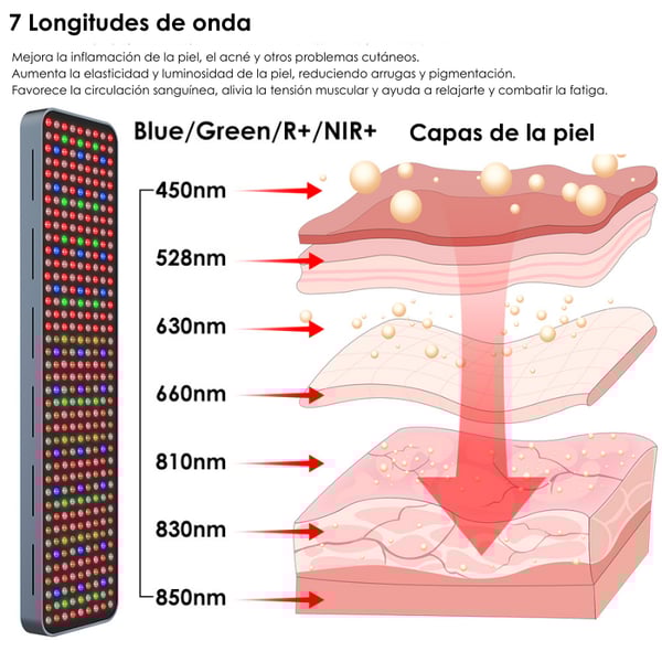 - Multiple wavelengths : includes blue, green, red and infrared light for diverse approaches (wellness, vitality and tissue treatment).