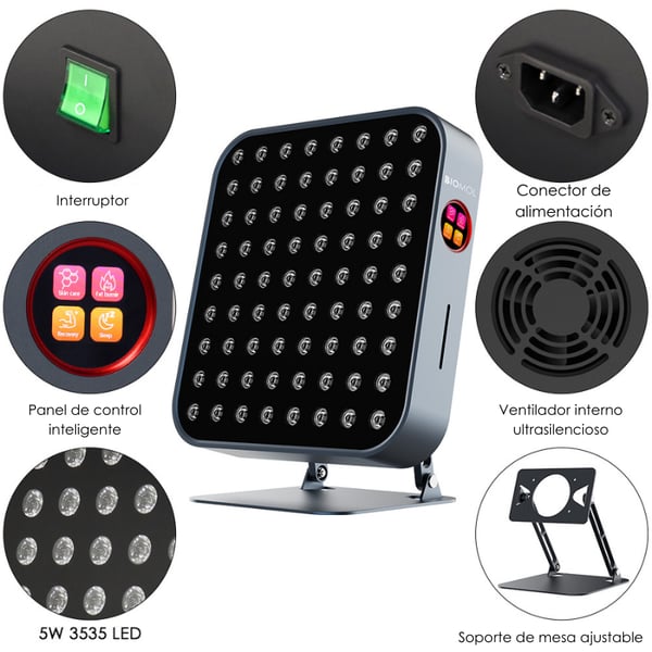 - Wavelength spectrum: Combines red (≈630 nm + 660 nm), near infrared (≈810 nm + 830 nm + 850 nm) channels and possibly other wavelengths for broad therapeutic light applications.