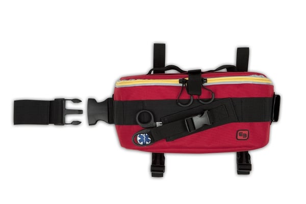 Waist-leg first aid kit specially designed for first interventions in emergency situations . Its multiple fastening systems allow the hands to remain free, offering solutions to act on terrains of different orographies.