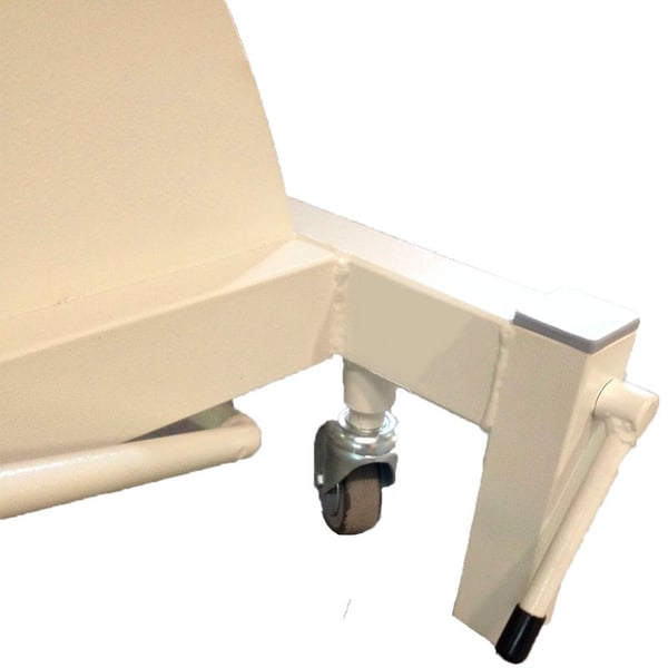 - It has 4 very robust swivel retractable wheels, with a 75mm soft cover, which allows it to be moved easily with the patient on it. Even on rough or uneven terrain. The wheels are uncovered and come into contact with the ground using a comfortable lever on both axles.