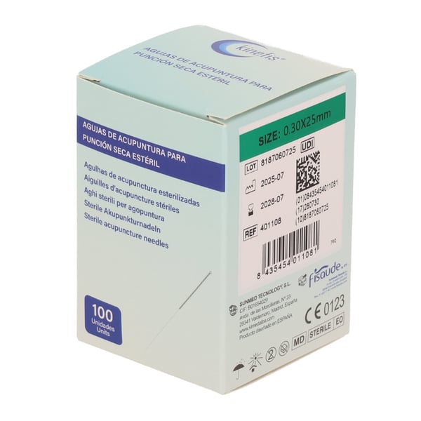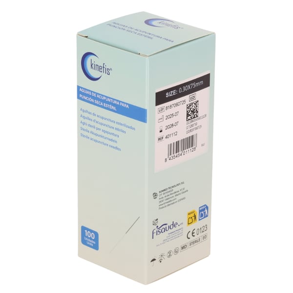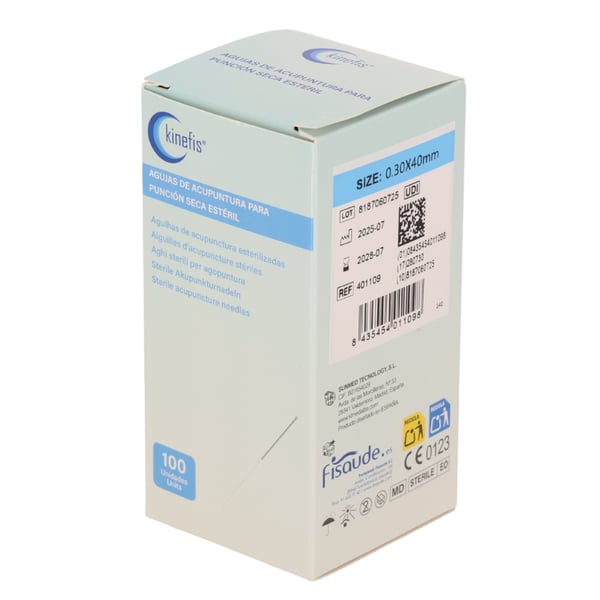 Kinefis needles for dry needling and professional acupuncture , sterile and single-use. Made of surgical steel , with a polished tip and guide , they guarantee maximum safety, smoothness, and precision in every treatment.