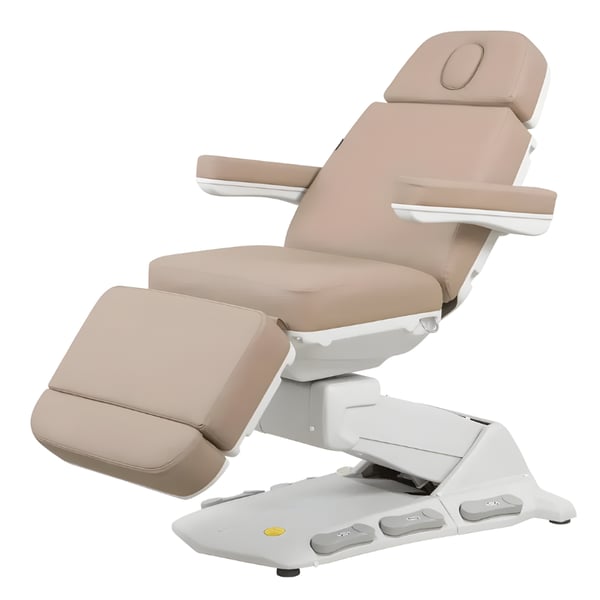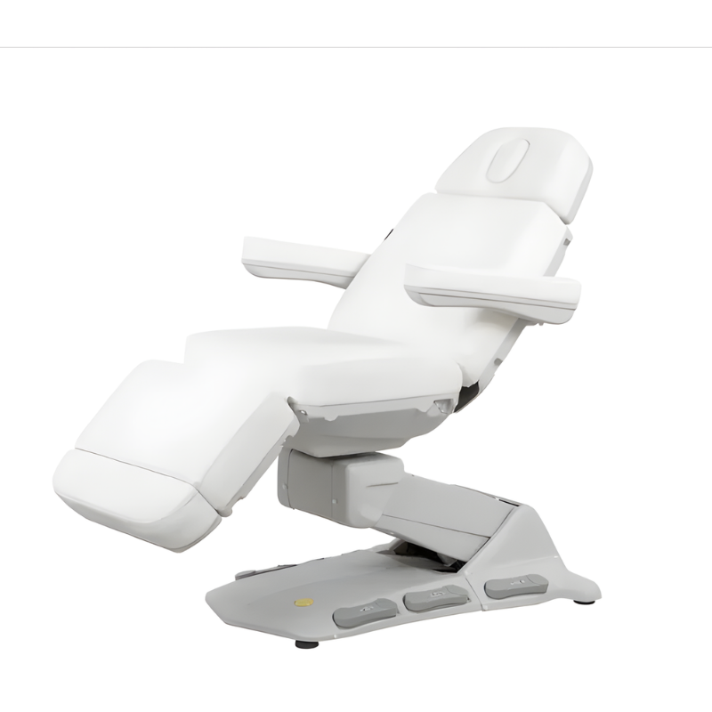 It stands out for its integrated heating system with two temperature levels , providing greater comfort to the client during treatment, as well as its ±110° rotation system with manual lock, ideal for optimizing workspace in the treatment room . In addition, it incorporates rotating armrests, an extendable headrest, and an extendable footrest, offering superior ergonomics for both the professional and the patient.