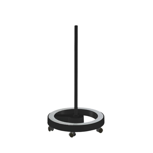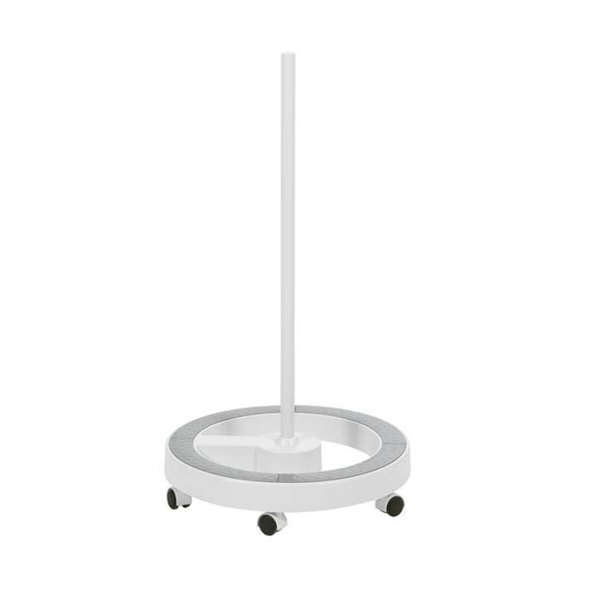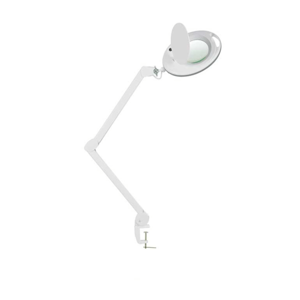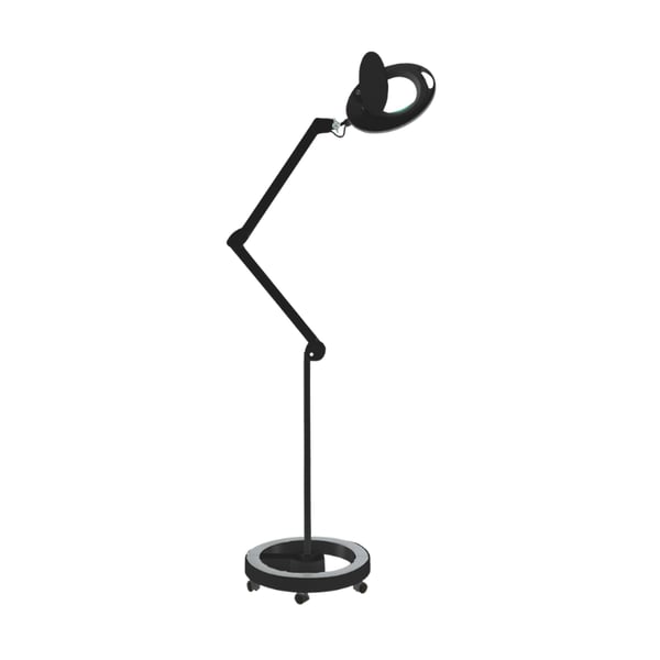 Magnifying lamp equipped with an articulated arm and a compact base with 5 wheels for maximum stability .