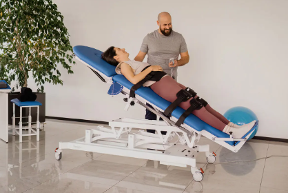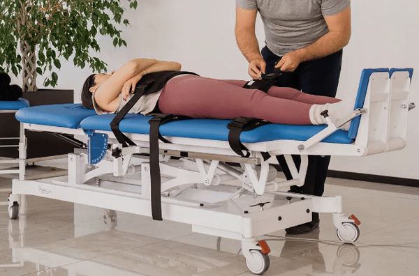 - The central guide facilitates the attachment of the 5 safety straps to the lower limbs; it also allows a limb to be freed for possible exercises given by the therapist.