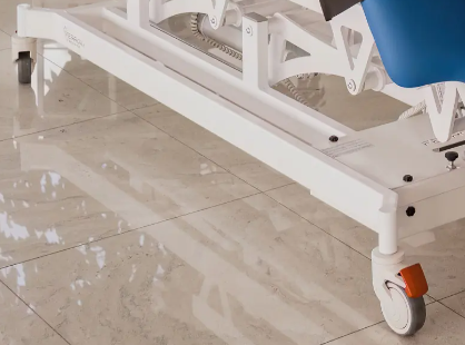- Four swivel wheels, all with brakes, allow the stretcher to be moved easily.