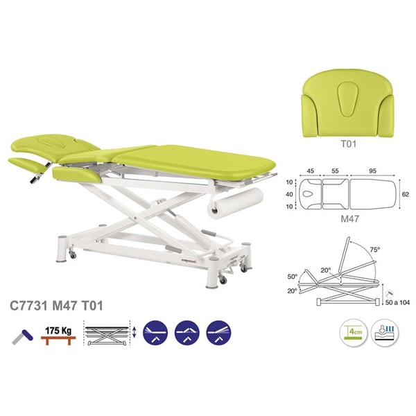 Multifunctional Ecopostural hydraulic stretcher: three bodies, with white scissor structure and facial hole (62 x 200 cm)