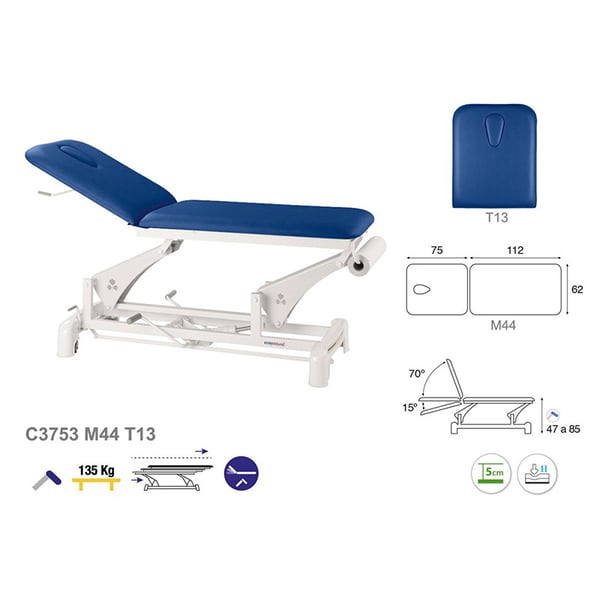 This multifunctional two-section hydraulic Ecopostural stretcher with a facial hole stands out for its simple, modern and functional design. Another of the great advantages of the stretcher is its versatility, as it is ideal for numerous fields: physiotherapy, osteopathy, general medicine, aesthetics, tattoos. A perfect solution for any health and beauty professional.