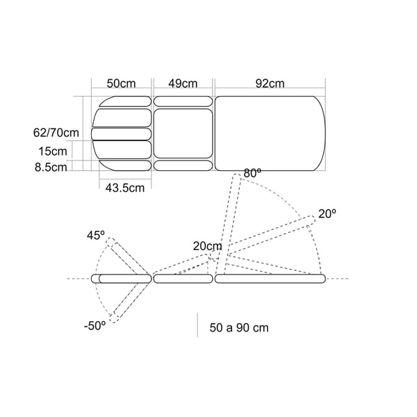 - Functionalities through two gas pistons: footboard (third body), central fold, Trendelenburg