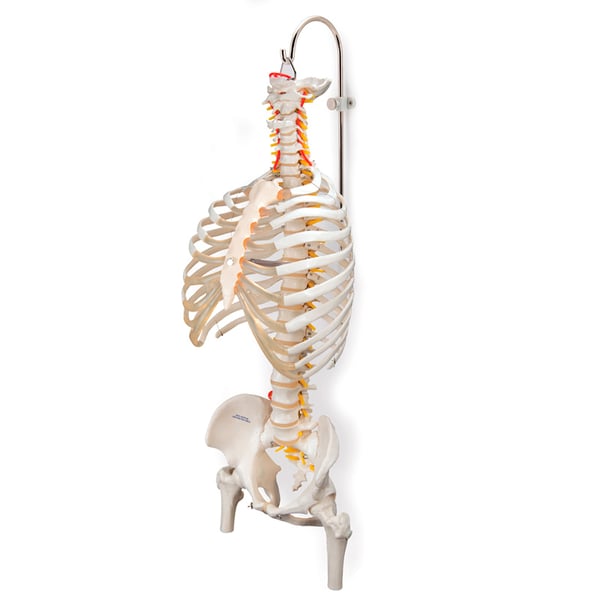 Multifunctional support for spine, removable into three different pieces, ideal for holding spinal models for study.