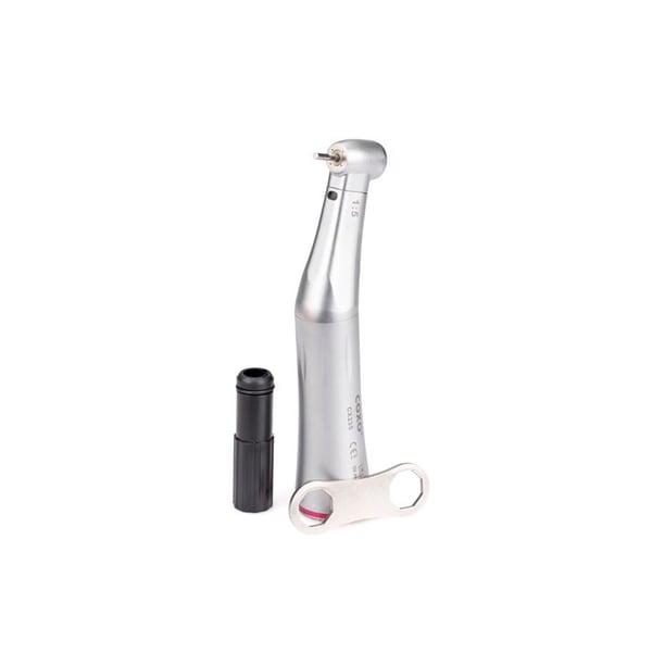 The Technoflux 1: 5 multiplier contra-angle with light and fiber optics is a rotating instrument with internal spray indicated to facilitate the vision of the treatment area. It is comfortable, practical and, at the same time, efficient thanks to its ergonomic design. It is easy to clean, as well as being autoclavable. It allows the change of strawberries, which is done by pressing a button. In addition, it offers an optimal speed of up to 220,000 rpm.