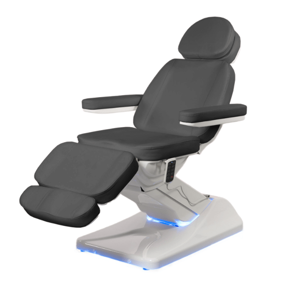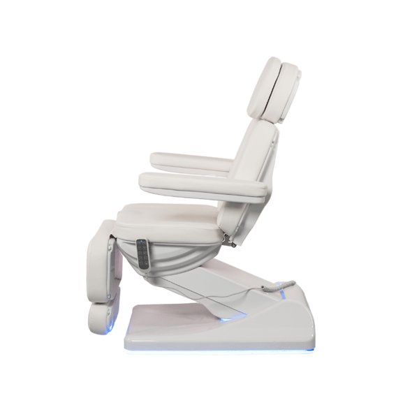 The OASIS treatment table is an advanced treatment solution that combines modern design, superior stability, and professional functionality. Thanks to its four electric motors, it allows complete adjustment of the height, backrest, seat, and footrest, all conveniently controlled from a single handheld remote.