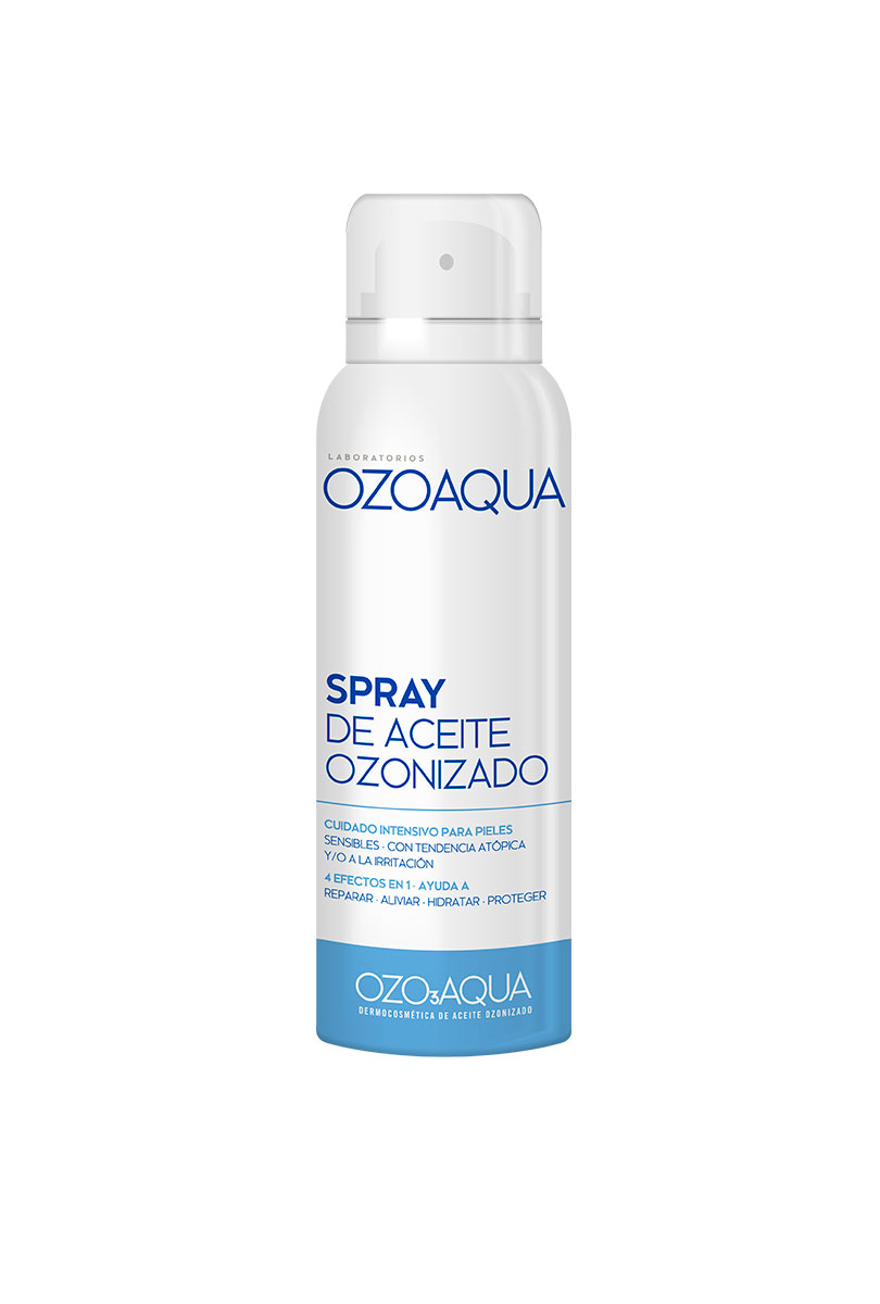 Ozonized Oil Spray, formulated for the intensive care of sensitive, irritated, or recovering skin. Its spray format allows for hygienic, even application without direct contact, promoting skin regeneration, hydration, and protection.