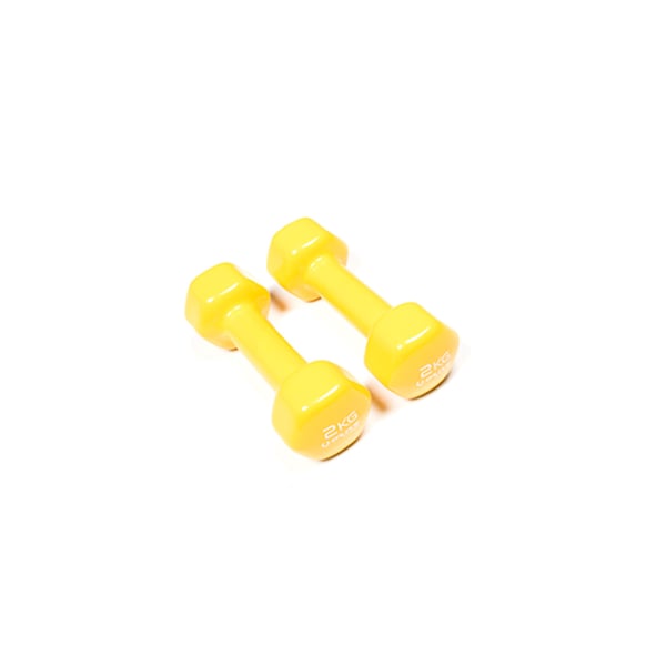 For reasons beyond Fisaude's control, the 2-kilogram dumbbells can be in two colors: lilac or yellow. Depending on the available stock.