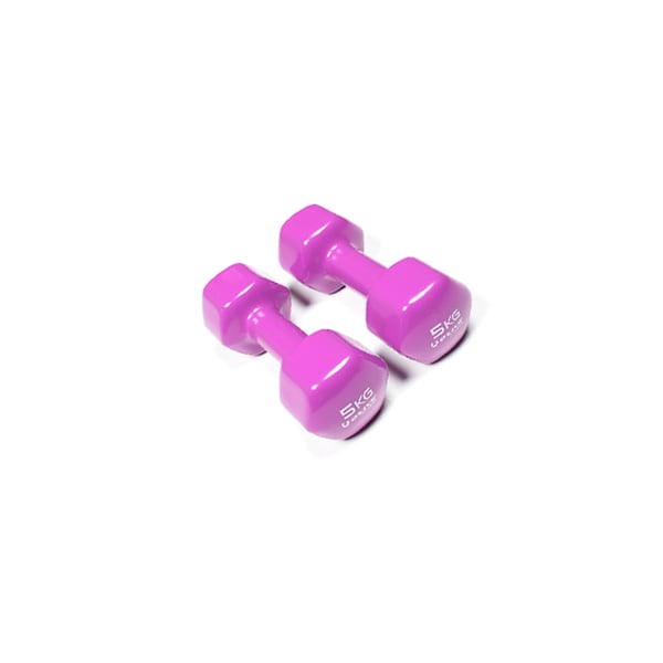 Covered by a layer of vinyl that protects the floor and the dumbbell itself from possible damage. Each weight has a different color and the weight is indicated on each dumbbell for easy identification. Easy to clean .