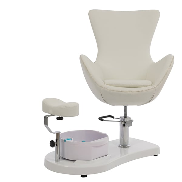 Pedicure armchair with foot bathtub and footrest adjustable in height and length. Height and rotation of the adjustable chair with hydraulic pump and locking system. White upholstered in PU and easy to clean.