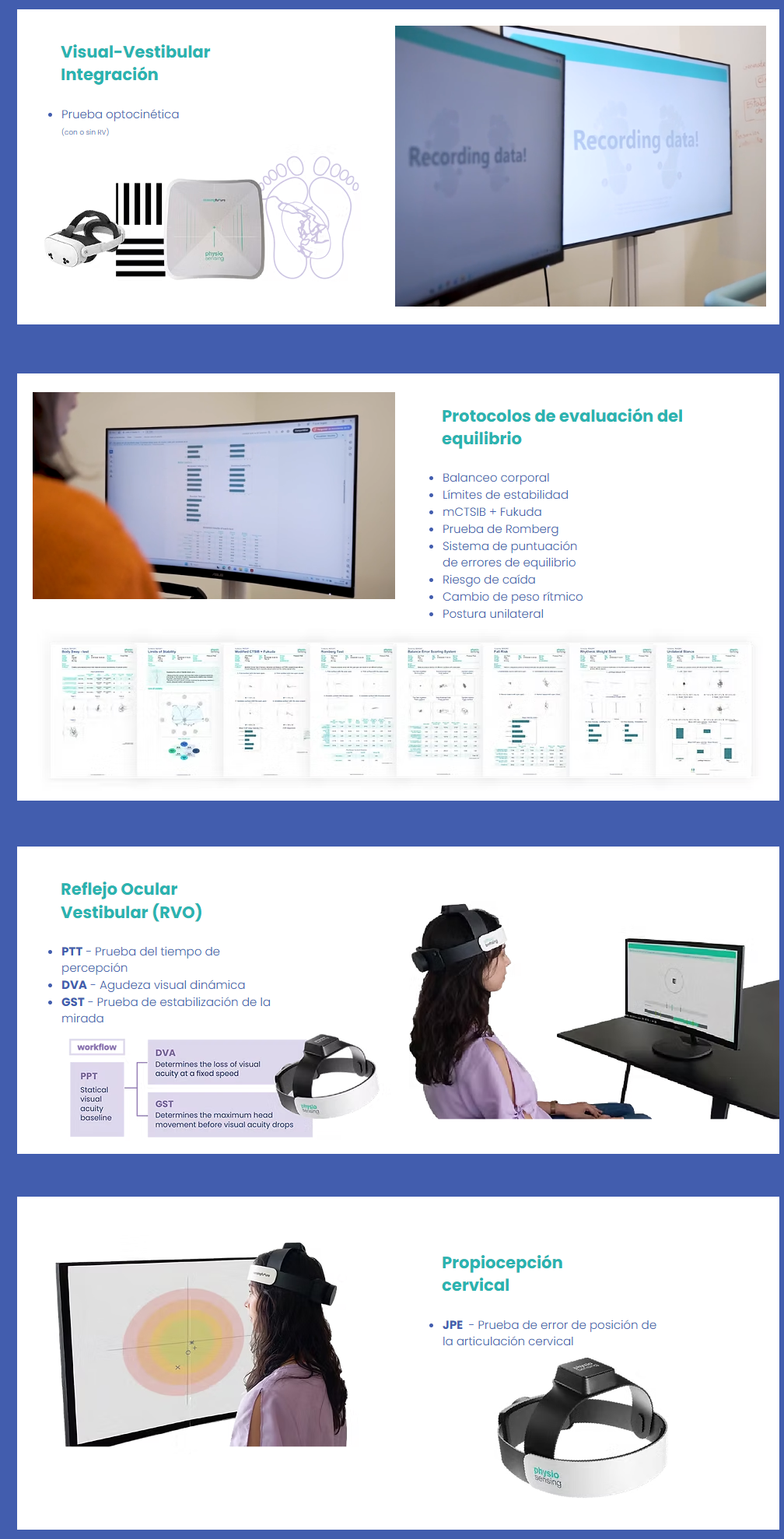 Comprehensive clinical platform for vestibular assessment and rehabilitation that combines posturography with inertial sensors, virtual reality and intelligent software for objective analysis and targeted therapies.