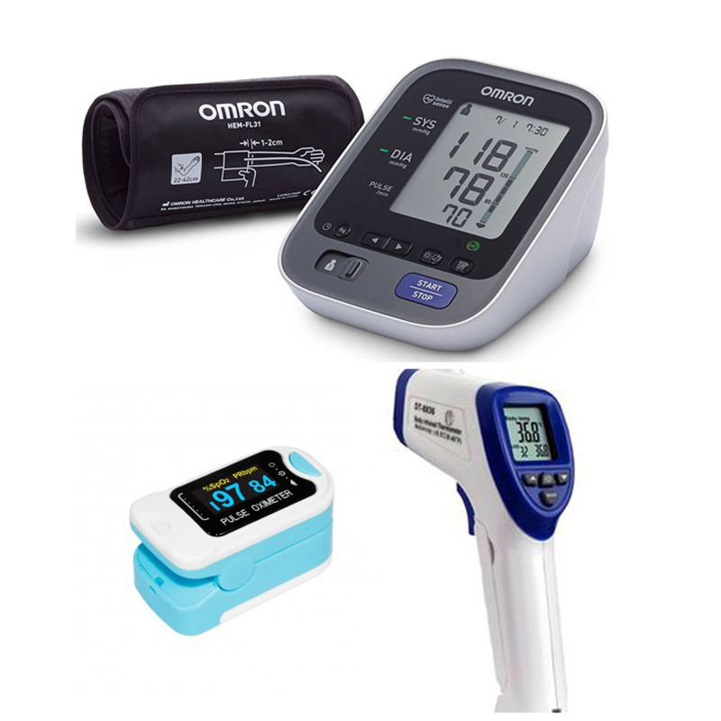 SAVINGS PACK First Medical Diagnosis: Omron M7 Intelli Tensiometer + Non-contact Thermometer + Finger Pulse Oximeter