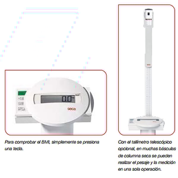 Seca 769 digital column scale with built-in BMI (body mass index) calculation . It is a scale of absolute reliability , with a capacity of up to 200Kg , and great precision thanks to the 100g division .