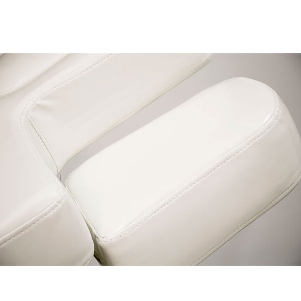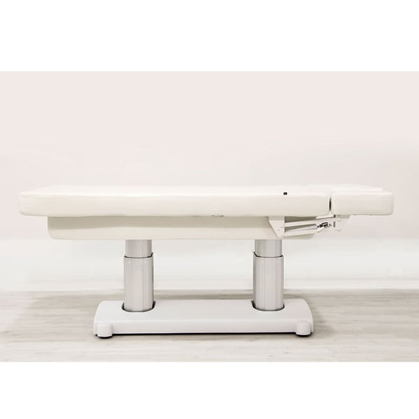 SPA stretcher with 4 motors that regulate the height and inclination of the backrest, the footrest and the entire stretcher. High comfort padding with high quality white PU upholstery. One-piece mattress with 3 sections. Adjustable armrests and headrest with facial hole.