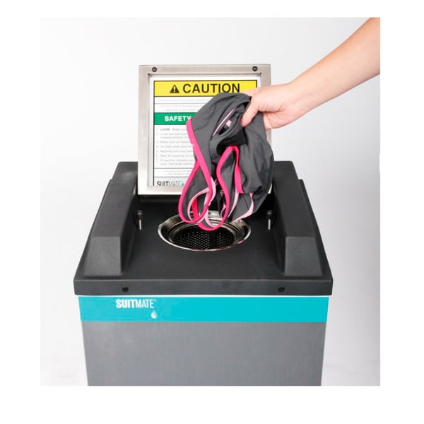 Suitmate® swimsuit dryer essential for changing rooms . Eliminates 99% of water from fabrics , maintains hygiene in wet spaces in centers and swimming pools. It uses an exclusive high-speed process to evacuate water and makes something wet stop dripping in just a few seconds.